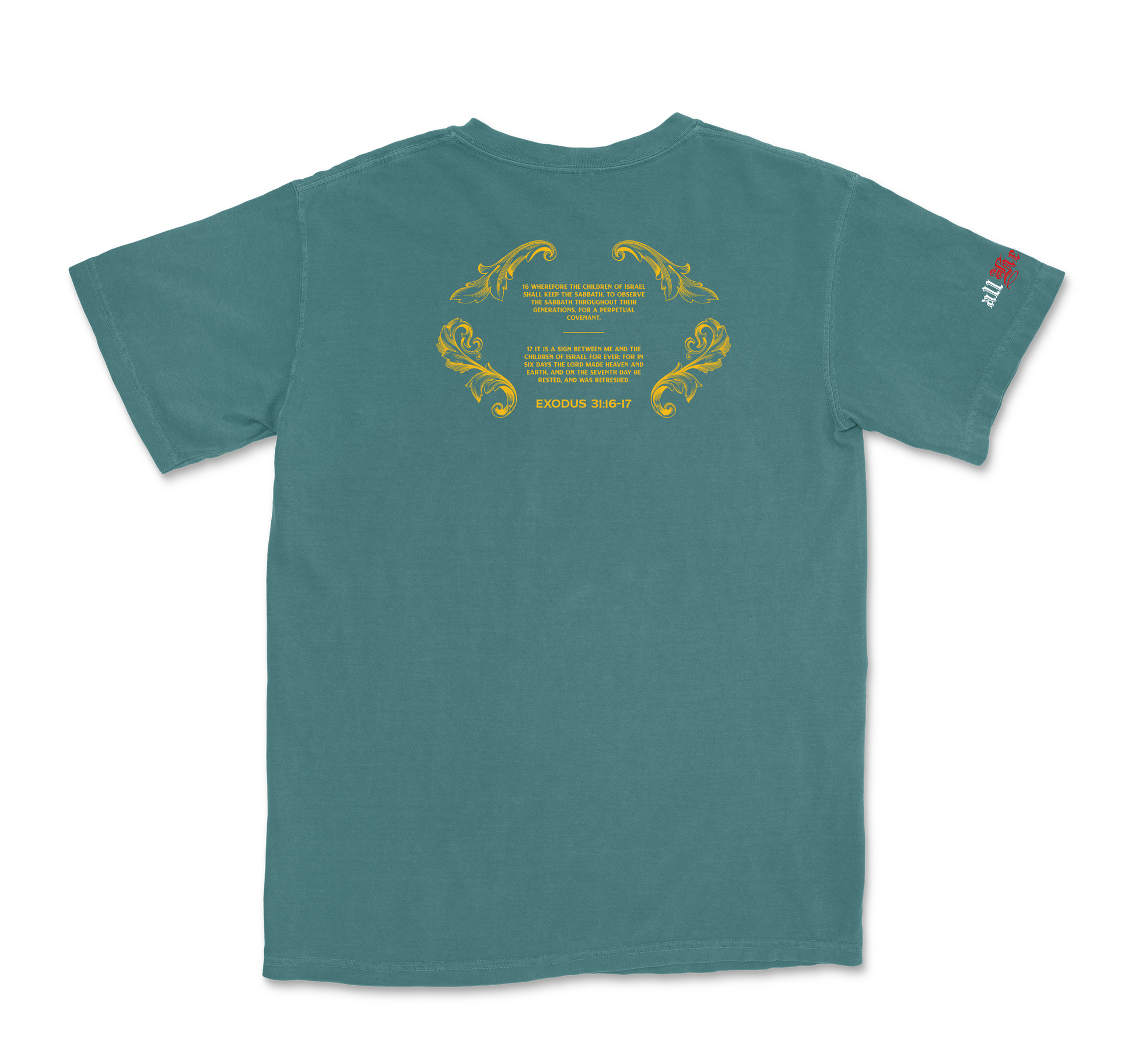 FRONT GRAPHIC: "Remember the Sabbath day, to keep it holy. - Exodus 20:8"